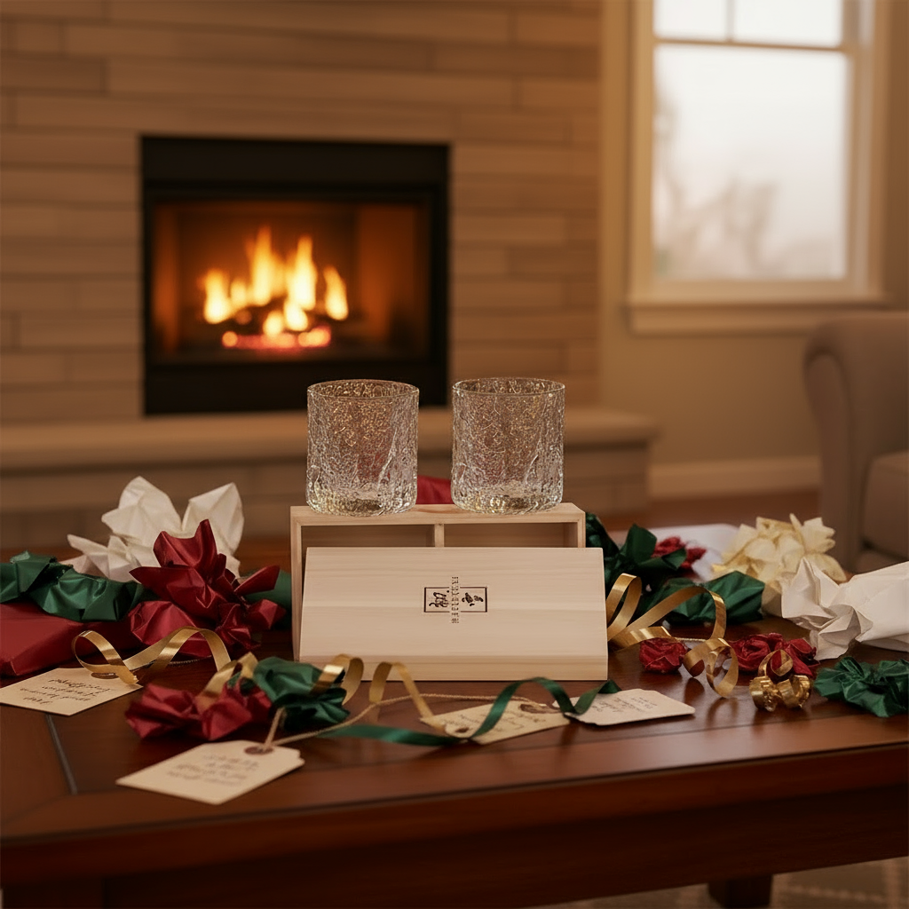Grab a glass or two, or choose from single or double glass gifts sets complete with a beautiful wood box. Tokyo Ice whiskey glass gift sets are for so much more than just whiskey, but definitely drinking glasses that put splendid style into your drink aesthetic—whether you like to sip on the rocks or straight up.
